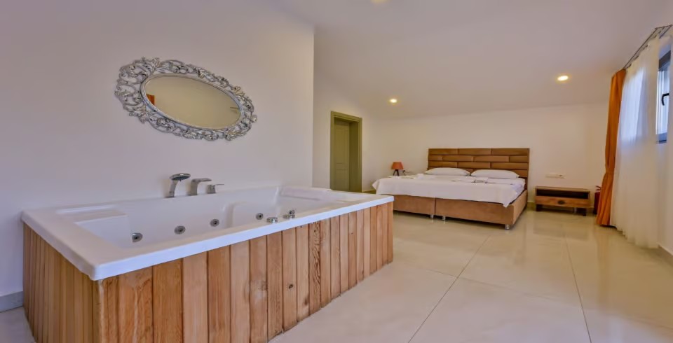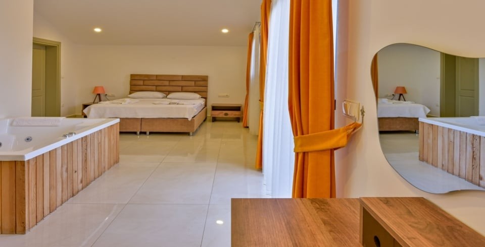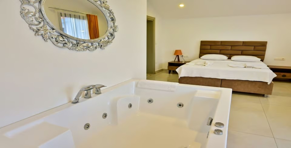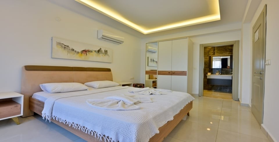 1.Yatak Odası: Çift kişilik yatak, jakuzi, klima,elbise dolabı, makyaj masası,tuvalet ve banyo bulunmaktadır.
