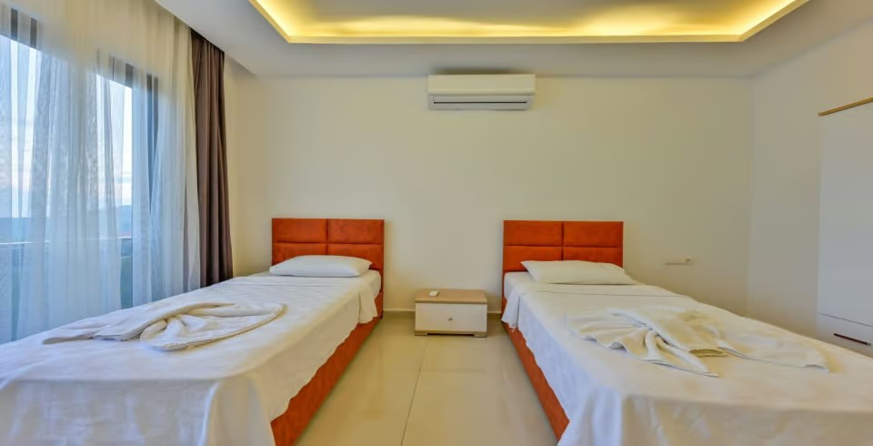 4.Yatak Odası: 2 adet tek kişilik yatak, klima, elbise dolabı, makyaj masası bulunmaktadır.