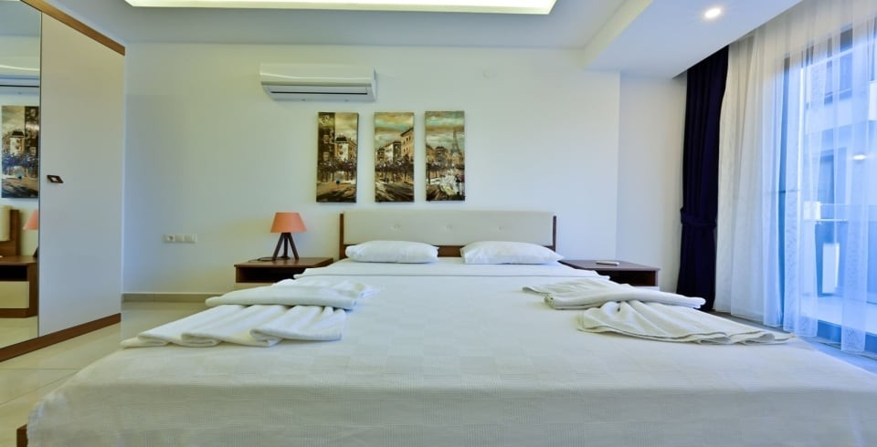 2.Yatak Odası: Çift kişilik yatak,klima,elbise dolabı, makyaj masası,tuvalet ve banyo bulunmaktadır.