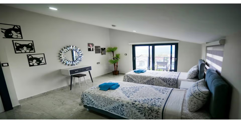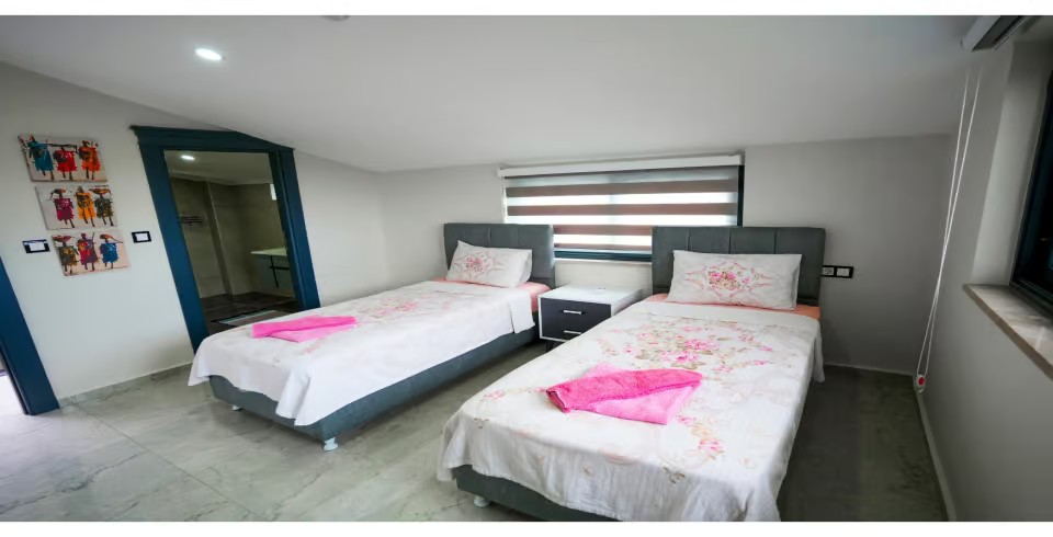 3.Yatak Odası:2 adet tek kişilik yatak, klima, elbise dolabı, makyaj masası,tuvalet ve banyo bulunmaktadır.