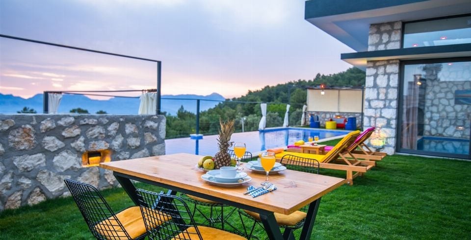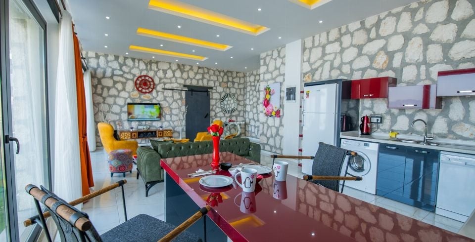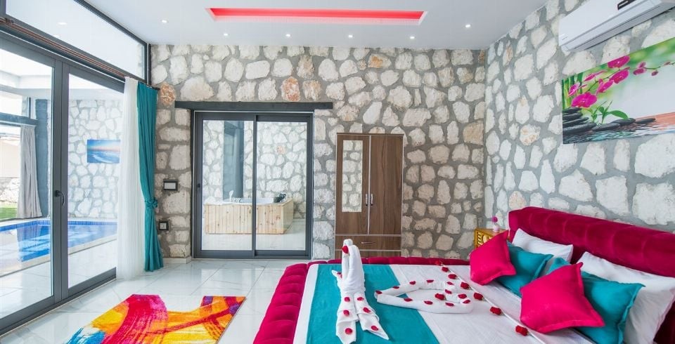 Muhafazakar kiralık villamız Kalkan’ın Üzümlü bölgesinde konumlanmıştır. Muhafazakar villamız doğa ile iç içe olup sevdiğiniz ile baş başa keyifli anlar geçirebileceğiniz küçük, şirin şekilde tasarlanmıştır. Yazlık villamızın havuz terası dışarıdan görünmemektedir ve gün batımını izlerken büyülenmemek elde değil. Villamız 2019 yılı yapımı olup hem iç dizaynında, hem dış tasarımında her şey en ince ayrıntısına kadar düşünülmüştür. Villa Gökkuşağına ulaşım gayet kolaydır. Yatak odası içerisinde bulunan ısıtmalı havuzun boyutları 6 x 3 metredir. 1 yatak odalı jakuzili muhafazakar villamızda sizi konuk etmekten mutluluk duyarız.