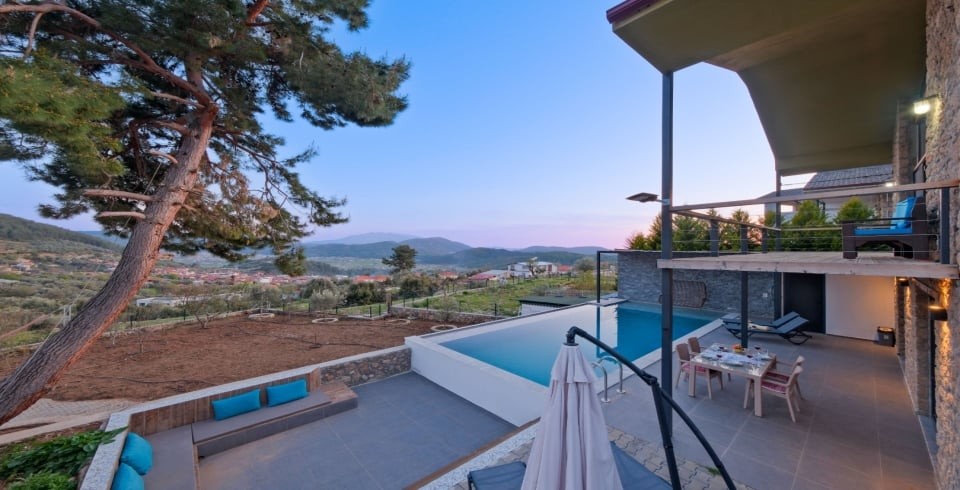 Fethiye’nin huzurlu ve doğayla iç içe bölgesi Yeşilüzümlü'de yer alan Villa Ayza, lüks ve konforu bir araya getiren benzersiz bir tatil deneyimi sunuyor. 3 yatak odası ve 6 kişilik kapasitesiyle, hem aileler hem de arkadaş grupları için ideal bir konaklama sunuyor.