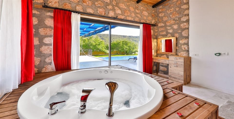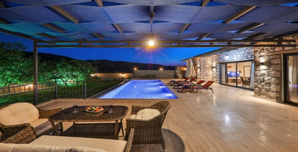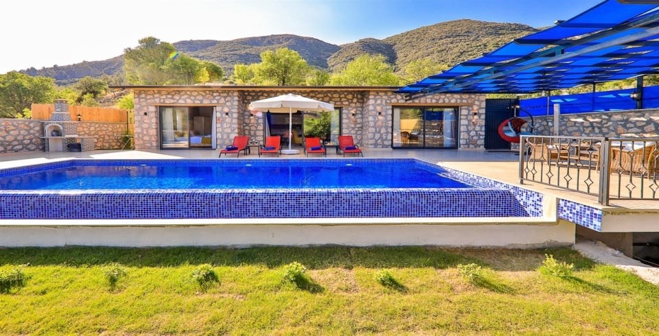 KAŞ Hacıoğlan mahallesinde bulunan villamız 2020 haziran ayı içerisinde tamamlanmış yeni bir villamızdır. Villamız doğa içerisinde olup Kalkan merkeze 20/25 dakika mesafede bulunmaktadır. Sarıbelen merkezine yakın konumda yer alan villamız, günlük ihtiyaçlarınıza kolaylıkla ulaşabileceğiniz bir yerdedir. Buna rağmen araçsız konaklama için uygun değildir. Lüks bir iç donanımı sahip olan villamız, özellikle balayı misafirlerimiz için çok uygun bir seçenektir. Villamızda 2 yatak odası açık mutfak salon ve jakuzi bulunmaktadır. Hacıoğlan bölgesinde konumlanan, doğa içerisinde yer alan 2020 yılı içerisinde sitemize dahil olan, havuzu tam korunaklı villamızdır.
