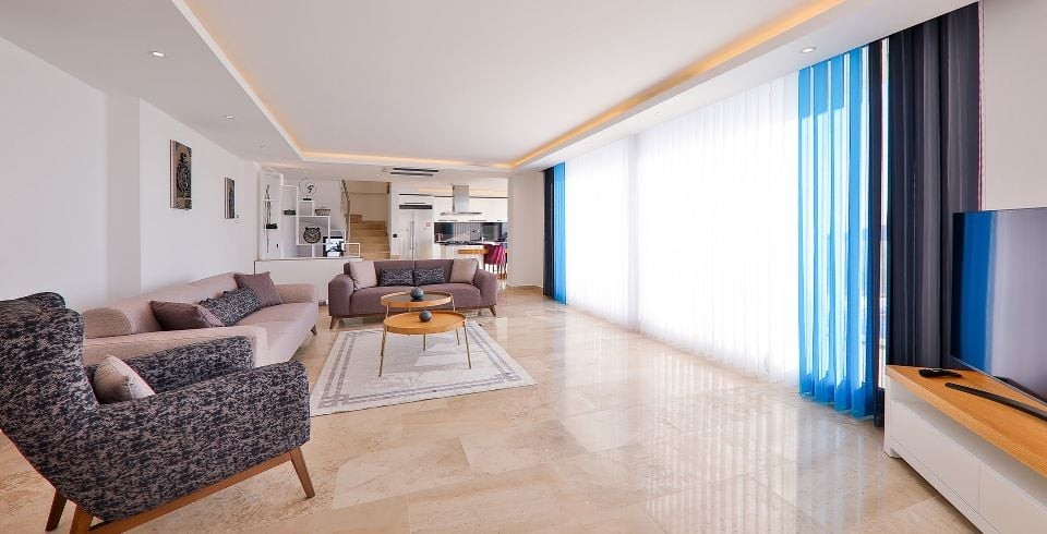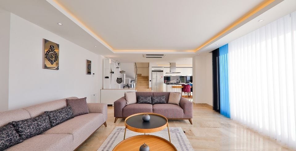 Salon : Salonumuzda oturma grubu, klima, LCD TV, sehpa, uydu alıcı bulunmaktadır. Havuz terasına çıkış yapılabilmektedir.