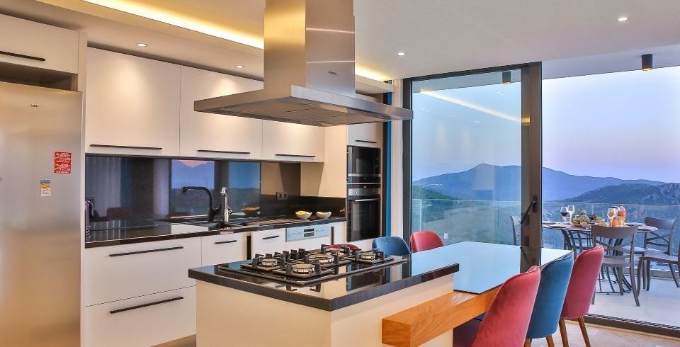 Mutfak : Modern Amerikan mutfakta buzdolabı, bulaşık makinası, fırın, 4'lü ocak, mikrodalga fırın, kettle, tost makinası, 4 kişilik yemek masası, yemek takımları, çatal ve bıçak takımları, tencere ve tava takımları, bardaklar bulunmaktadır