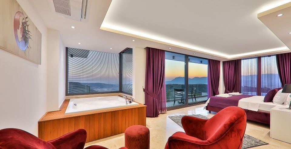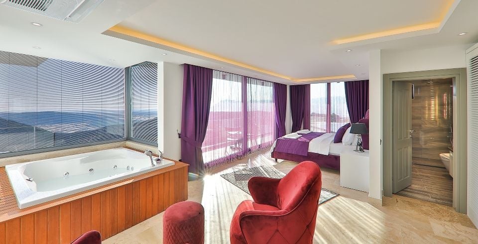 1. Yatak Odası : Çift kişilik yatak odası, klima, jakuzi elbise dolabı, makyaj masası, TV, tuvalet- Banyo,  bulunmaktadır.