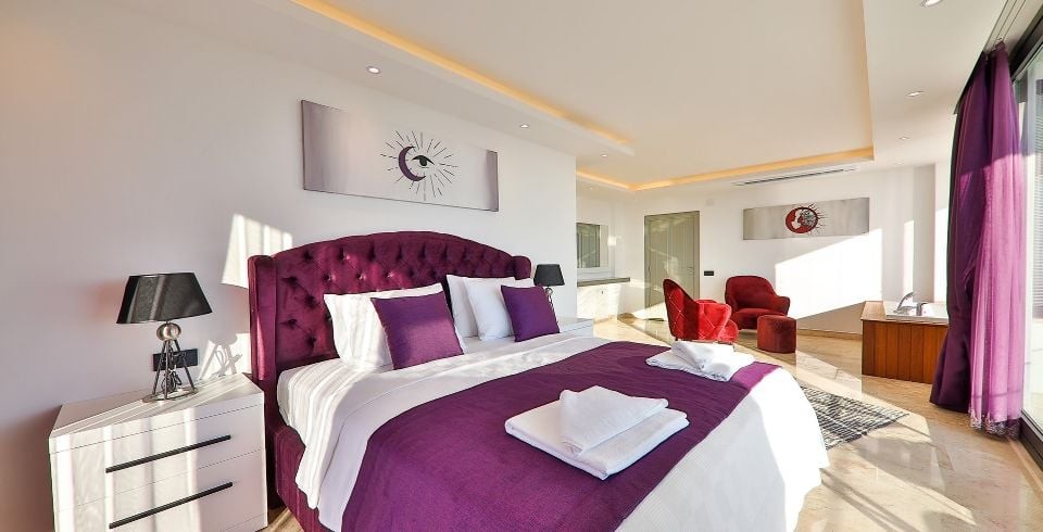 2. Yatak Odası : Çift kişilik yatak odası, klima, jakuzi elbise dolabı, makyaj masası, TV, tuvalet- Banyo, bulunmaktadır.