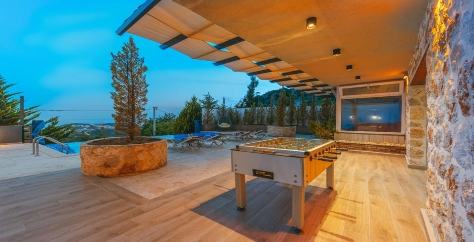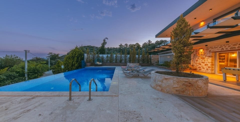 Havuz Ve Bahçe : Villamızın havuzu korunaklı olup dışarıdan gözükmemektedir.Havuz terasında şezlong , şemsiye,salıncak,langırt,masa tenisi ,oturma grubu ve barbekü bulunmaktadır.