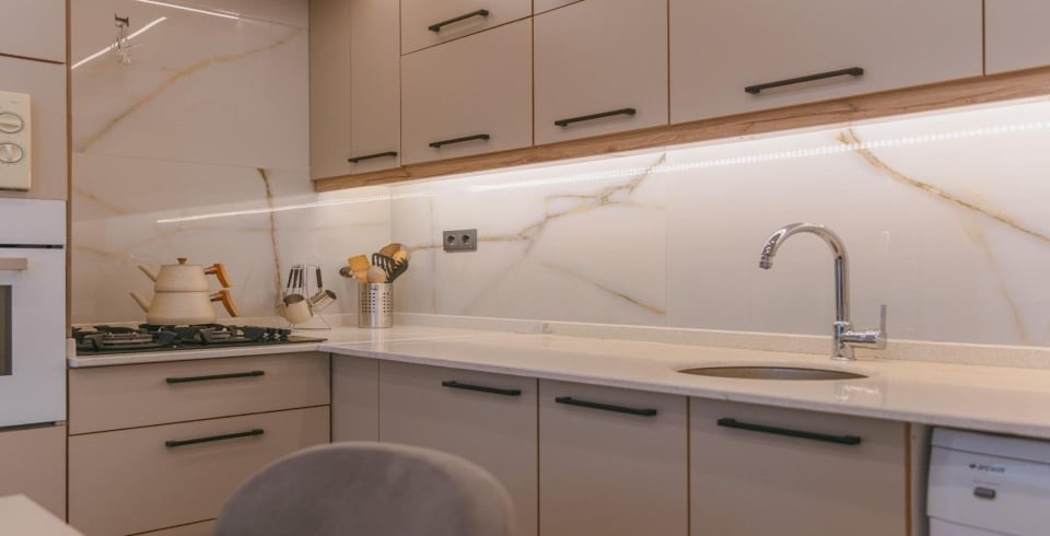 Mutfak : Modern amerikan mutfak içerisinde buzdolabı, bulaşık makinesi, çamaşır makinesi, yemek takımı, çatal-bıçak seti, tencere, tava, bardak ve diğer mutfak ekipmanları yer almaktadır.