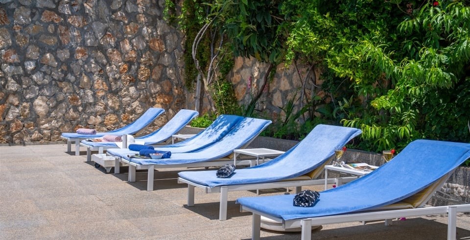 Bahçe : Villamızın bahçesinde özel yüzme havuzu, güneşlenmeniz için 6 adet şezlong, güneşlenme terası, 8 kişilik masa, oturma grubu, mangal keyfiniz için barbekü, güneş şemsiyesi bulunmaktadır.