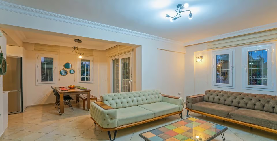 Villamız fethiye bölgesinde bulunmakta olup 3 yatak odalı 6 kişilik kapasiteye sahiptir. Villamızın kendine ait özel yüzme havuzu bulunmakta olup yeşillikler içersinde bahçesi bulunmaktadır. En yakın plaja 2 km markete ise 500 metre mesafede bulunmaktadır. Tatiliniz boyunca huzurlu bir tatil geçirmeniz için tüm ekip sizin için çalışmaktayız.