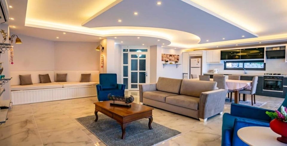 Salon :  Oturma grubu, televizyon, klima, sehpa, internet  bulunmaktadır.