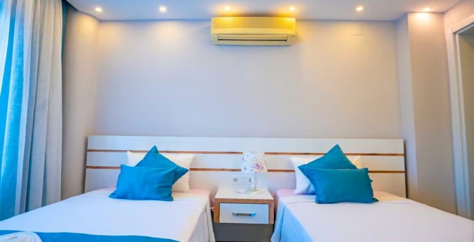4. Yatak Odası : 2 Adet tek kişilik yatak, komodin, gardırop, ebeveyn banyosu, klima bulunmaktadır.