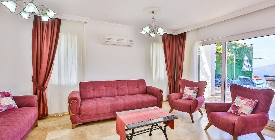 Salon : Deniz manzaralı modern Salona sahip olup TV, uydu, oturma grubu, DVD, internet, klima, WC ve lavabo bulunmaktadır.