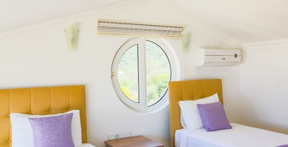 Üst katlarda yer alan 4 yatak odasının ikisi çift kişilik, diğer ikisi ise iki tek kişilik yataklı olarak düzenlenmiştir. Odaların tamamı klimalı olup, modern bir tarzda dekore edilmiştir. Üst kattaki süit odalar geniş balkonlara açılırken, deniz manzaralı teras katı, sabah kahveleri veya akşam gün batımı eşliğinde dinlenmek için ideal bir ortam sunar. Villada toplam 4 banyo ve tuvalet bulunur; bunlardan biri ebeveyn banyosu olarak hizmet vermektedir.