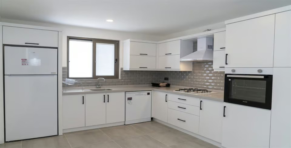 Mutfak : Modern amerikan mutfak içerisinde buzdolabı, bulaşık makinesi, çamaşır makinesi, yemek takımı, çatal-bıçak seti, tencere, tava, bardak ve diğer mutfak ekipmanları yer almaktadır.