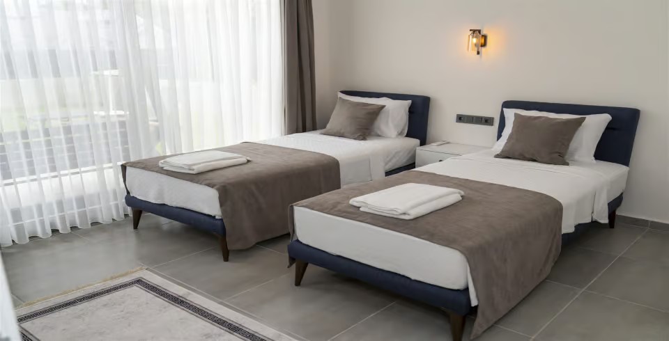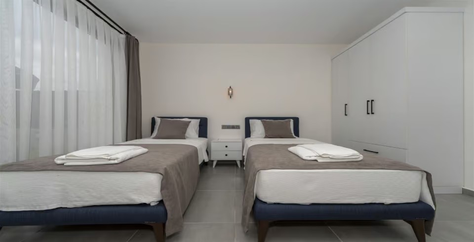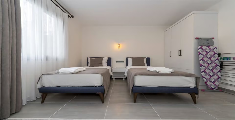 2. Yatak Odası : 2 adet tek kişilik yatak, elbise dolabı, makyaj masası, komodin,banyo ve lavabo bulunmaktadır.