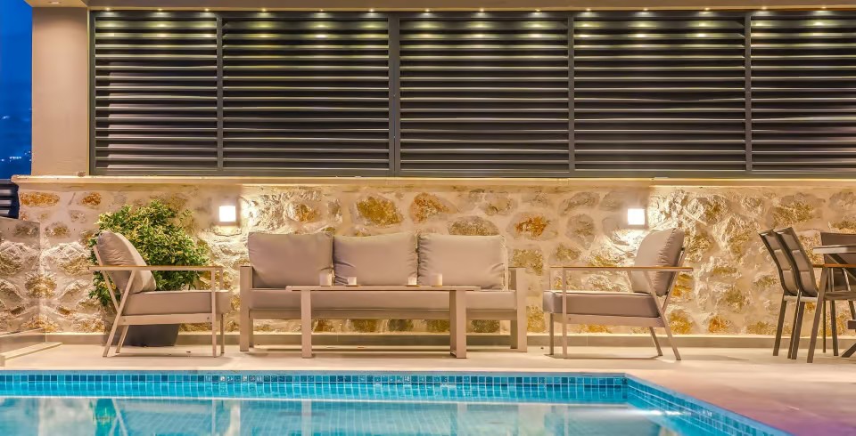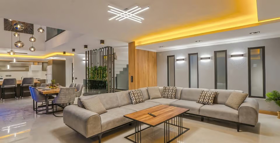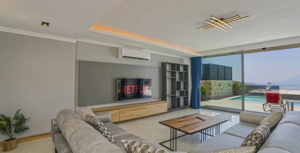 Salon : Salon bölümünde şık ve konforlu bir oturma grubu, TV ve havuz terasına çıkış bulunmaktadır.