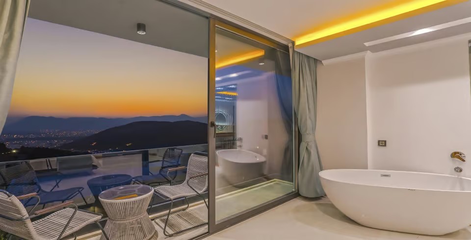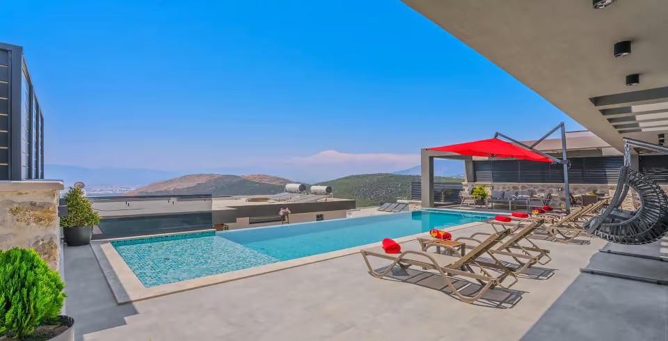 Villa Best, Kalkan Akbel bölgesinde yer alan modern mimarili villamız 3 yatak odalı ve 6 kişilik konaklama kapasitesine sahiptir. Villamızın geniş ve doğa manzaralı bahçesinde havuz, şezlong, güneş şemsiyeleri, oturma köşesi, salıncak ve yemek masası yer almaktadır. Bunun yanı sıra konforlu bir tatil geçirebilmeniz için en kaliteli eşyalar ile dekore edilmiş yatak odalarından birinde jakuzi yer almaktadır. Hamam , sauna , spor aletleri , sinema odası gibi aktiviteler ile tatilinizi daha keyifli hale getirebilirsiniz.