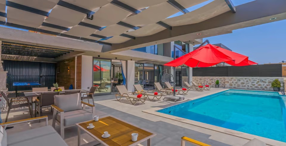 Havuz ve Bahçe: Özel Yüzme Havuzu, şezlong, güneş şemsiyesi, bahçe oturma grubu, bahçe yemek masası ,masa tenisi, barbekü bulunmaktadır.
