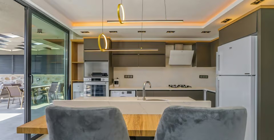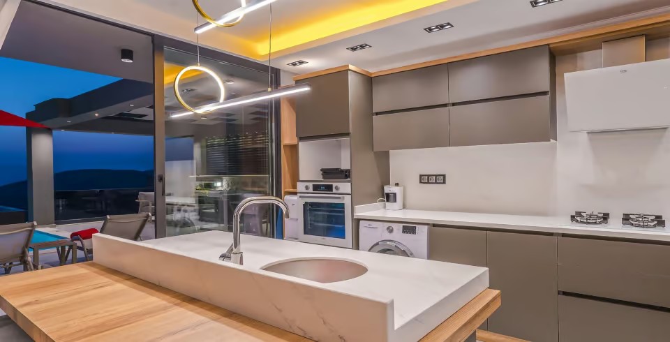 Mutfak : Modern ve şık Amerikan mutfak içerisinde buzdolabı, fırın, bulaşık ve çamaşır makinesi bulunmaktadır.