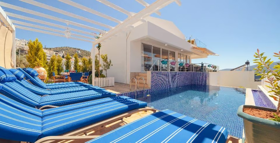 Villa Beyza, Kalkan Kışla bölgesinde yer almaktadır. 8 kişi kapasitesine sahip villamız deniz manzarasına sahiptir. Şehir merkezine ve plaja yürüme mesafesindedir. Kalabalık arkadaş grupları ve geniş aileler için ideal villa seçeneklerimizdendir.