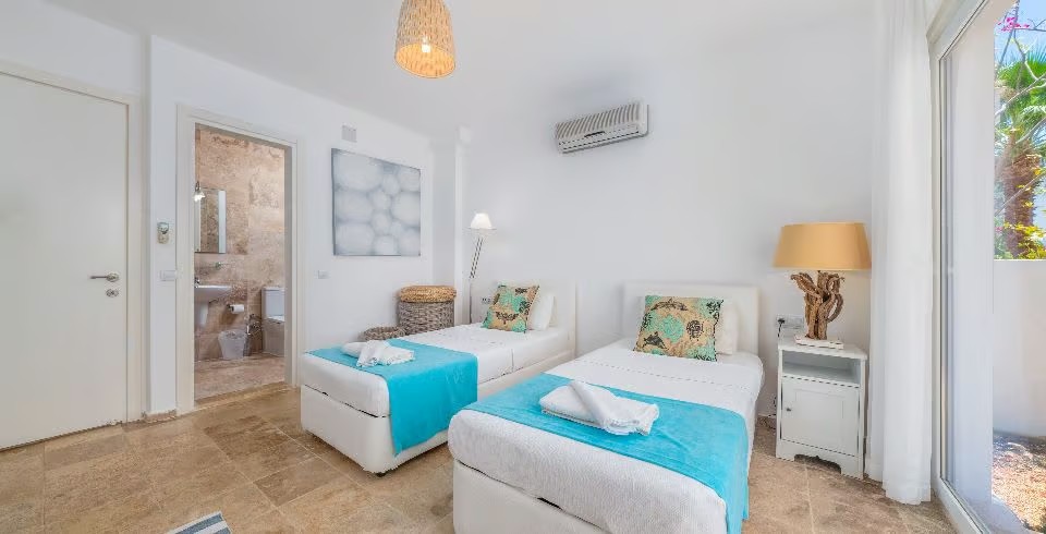 4. Yatak Odası : 2 adet tek kişilik yatak, klima, elbise dolabı, komodin, makyaj masası, banyo ve lavabo bulunmaktadır.