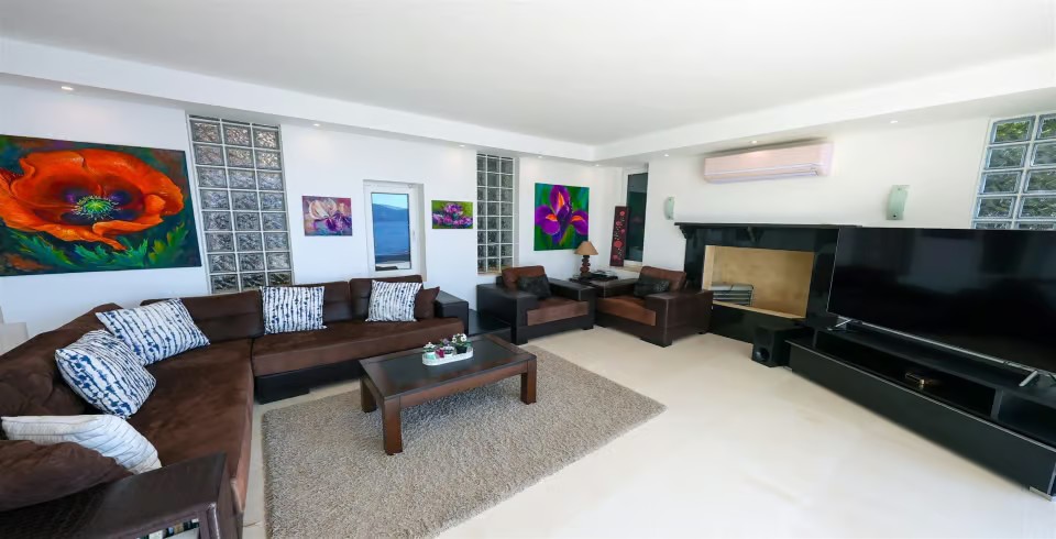Salon : Deniz manzaralı modern Salona sahip olup TV, uydu, oturma grubu, DVD, internet, klima bulunmaktadır.