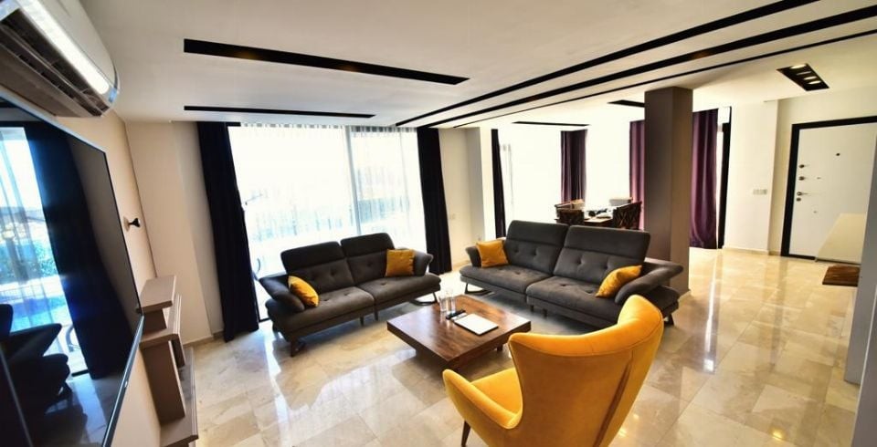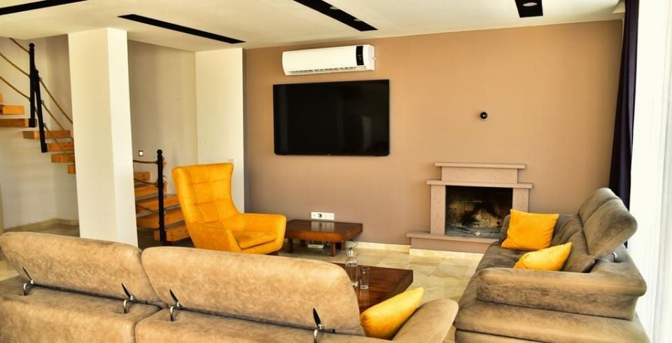 Salon : Salonumuzda oturma grubu, klima, LCD TV, sehpa, uydu alıcı bulunmaktadır. Havuz terasına çıkış yapılabilmektedir.