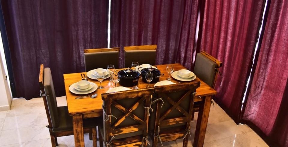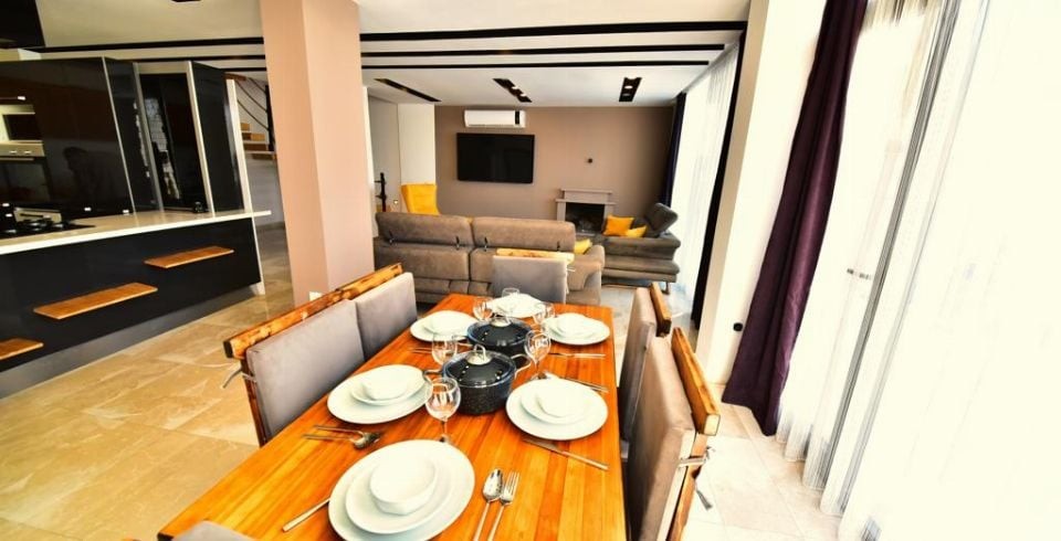 Mutfak : Modern Amerikan mutfakta buzdolabı, bulaşık makinası, fırın, 4'lü ocak, mikrodalga fırın, kettle, tost makinası, 4 kişilik yemek masası, yemek takımları, çatal ve bıçak takımları, tencere ve tava takımları, bardaklar bulunmaktadır