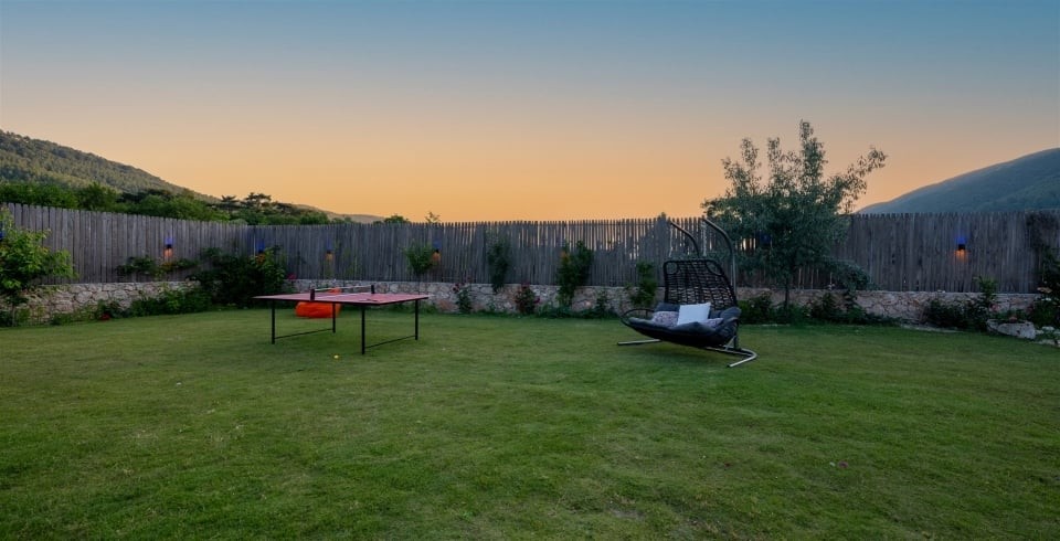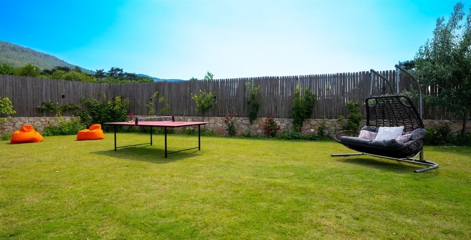 Bahçe : Bahçe içerisinde özel yüzme havuzu, 4 adet şezlong, bahçe mobilyaları, barbekü bulunmaktadır.
