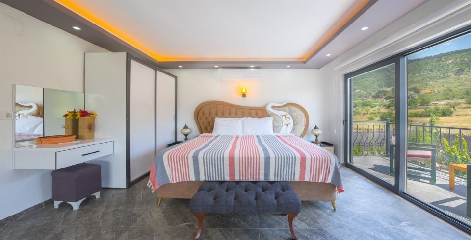 Kalkan Hacıoğlan köyünde bulunan 2 yatak odalı 4 kişilik yeni yapılmış muhafazakar korunaklı villamız doğa manzarasına sahiptir. Villamızın bahçesinde salıncak ve masa tenisi bulunmakta olup tatil süreniz içersin de keyifli bir vakit geçirmenizi sağlayacaktır. Villamız Muhafazakar olup Balayı tatili düşünen çiftlerimiz içinde oldukça uygun bir villa seçeneğimizdir.