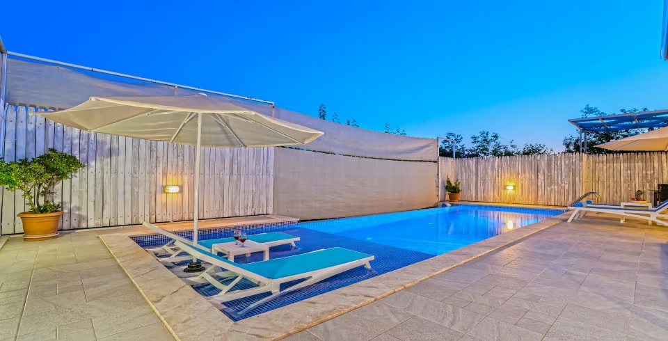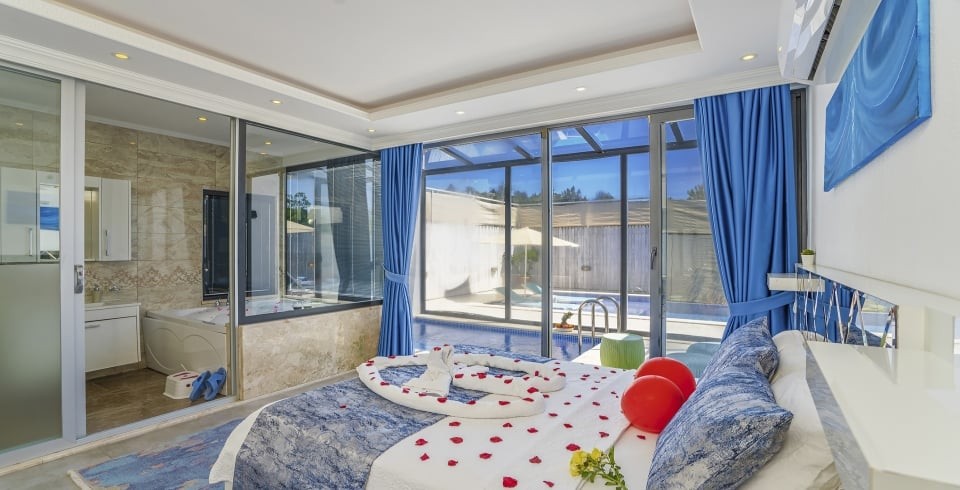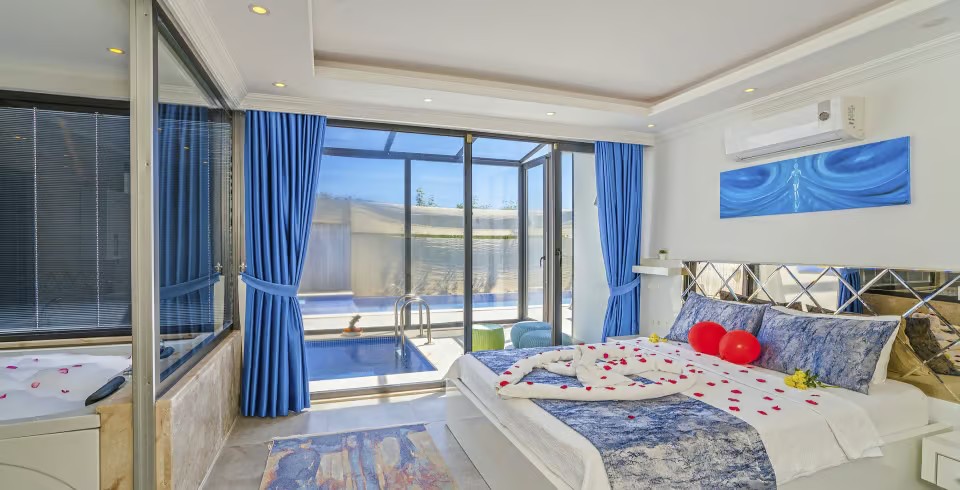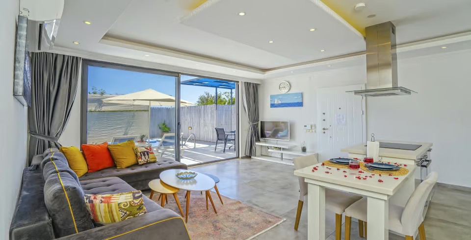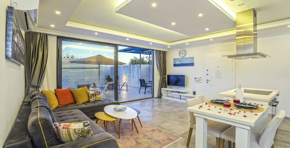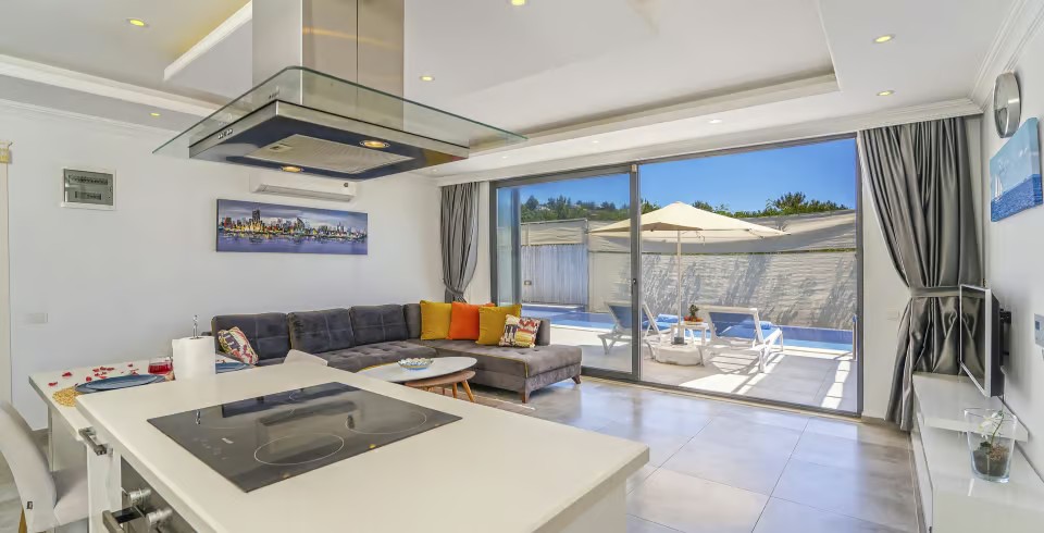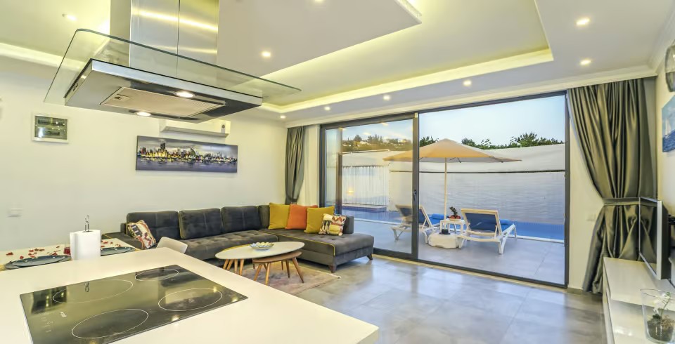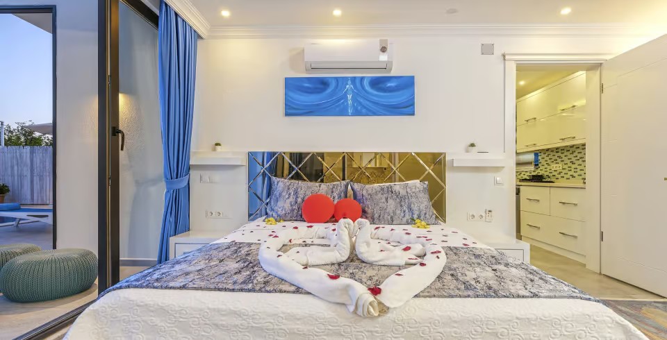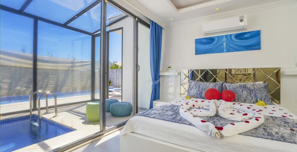 Kalkan Üzümlü Köyü’nde yer alan bu 1+1 lüks villamız, özellikle balayı çiftleri için tasarlanmıştır. Ancak 2 yetişkin ve 1 küçük çocuktan oluşan aileler için de uygundur. Salon kısmındaki açılabilir kanepe ve talep halinde temin edilen bebek yatağıyla konforlu bir konaklama sunar.