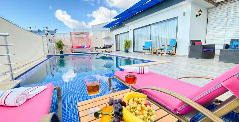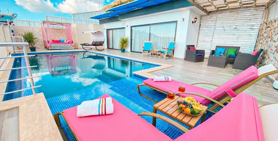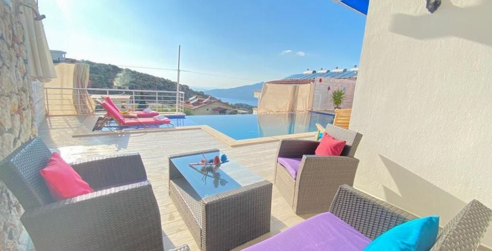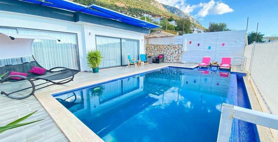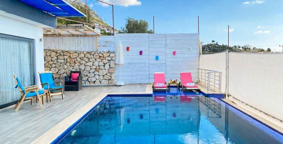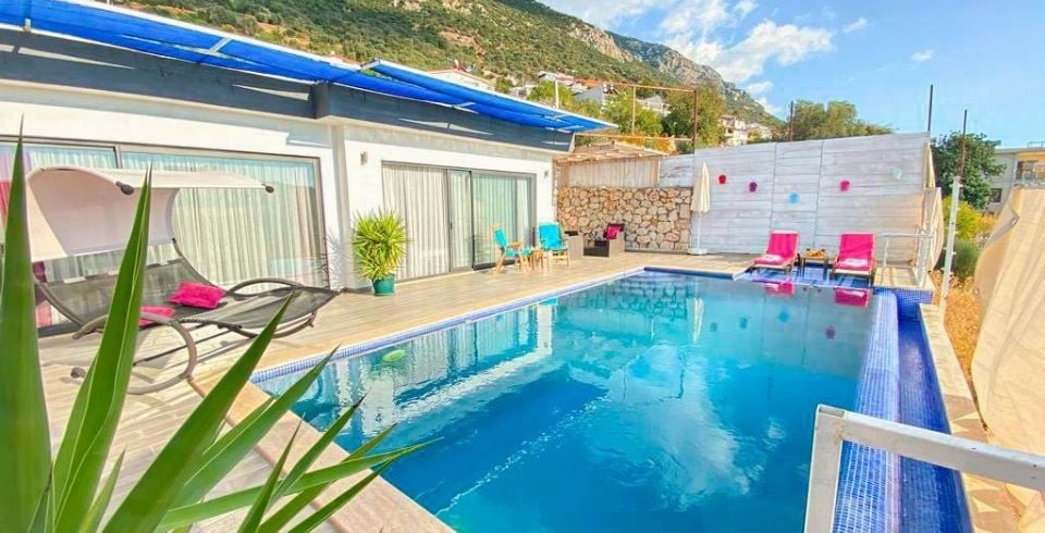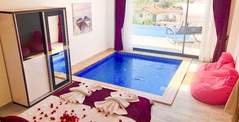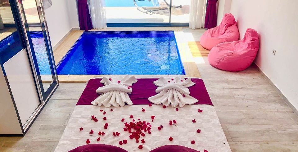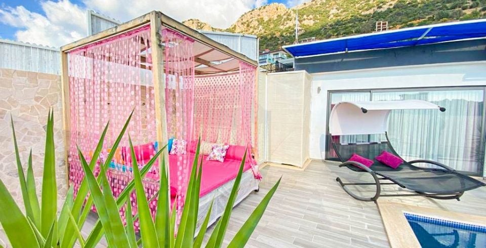 Kalkan Kördere bölesinde bulunan 1 yatak odalı muhafazakar balayı villasıdır. Villamızda ayrıca kış ayları içinde misafirlerimiz düşünülmüş olup ısıtma havuzu bulunmaktadır. Villamızın denize ve merkeze yakın olup araba ile kolay bir ulaşım sağlanmaktadır. Misafirlerimizin isteğine bağlı olarak villamızın iç havuzu açılmaktadır. Balayı villamızın havuz terasında muhteşem bir köşk bulunmaktadır. Villamızın havuzunun bir bölümü sığ havuz olarak kullanılmaktadır. Kiralık Balayı villasının havuz terasında mangal şezlong şemsiye ve oturma grubu bulunmaktadır.