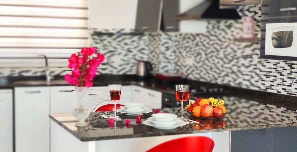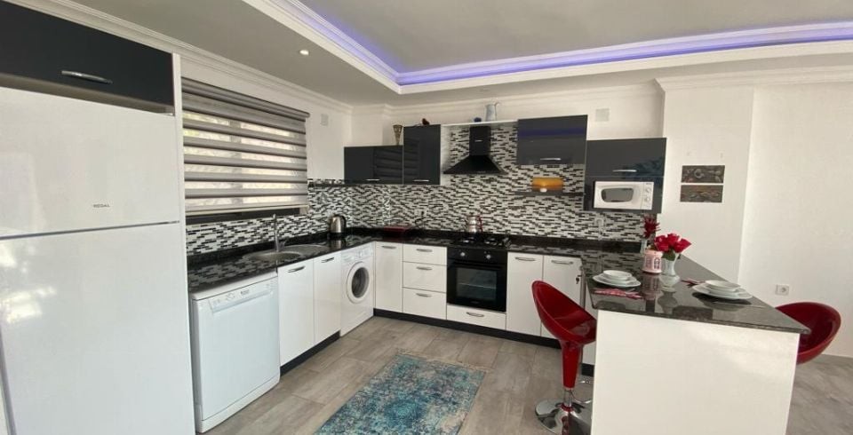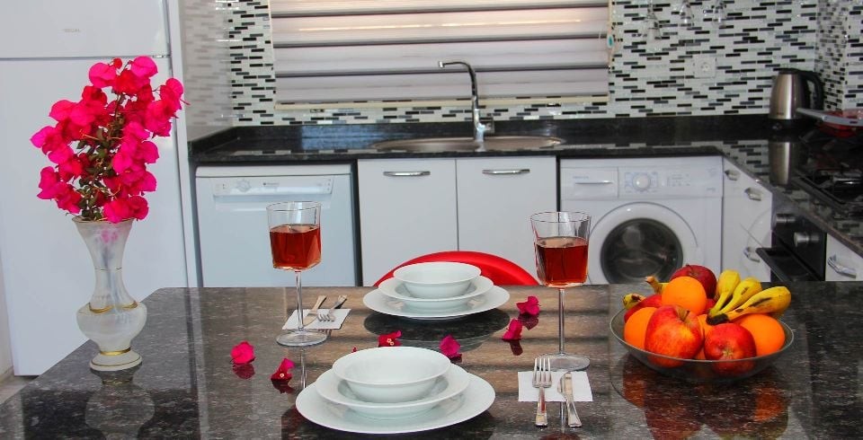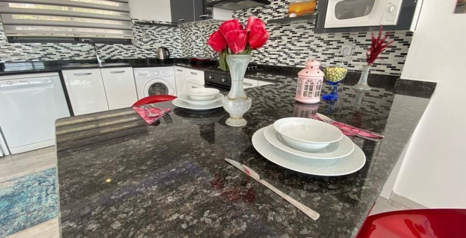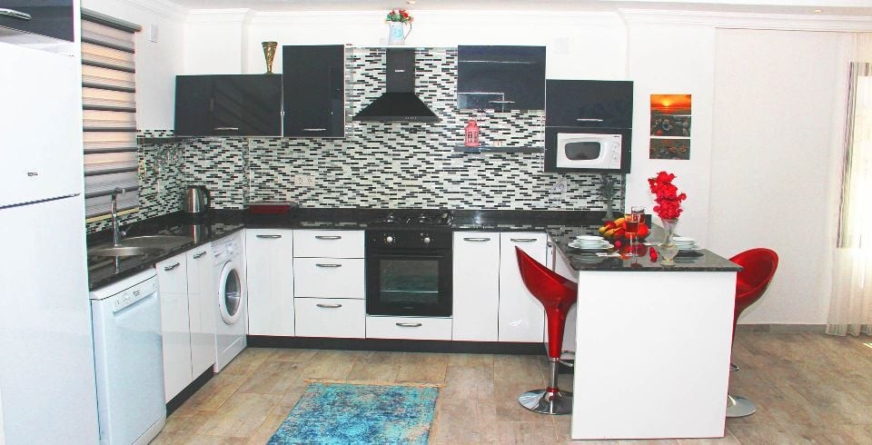 Mutfak : Yazlık Villamızın mutfağında buzdolabı, bulaşık makinası, çamaşır makinası, 4'lü ankastre ocak, mikro dalga fırın, kettle, fırın ve mutfak araç gereçleri bulunmaktadır.