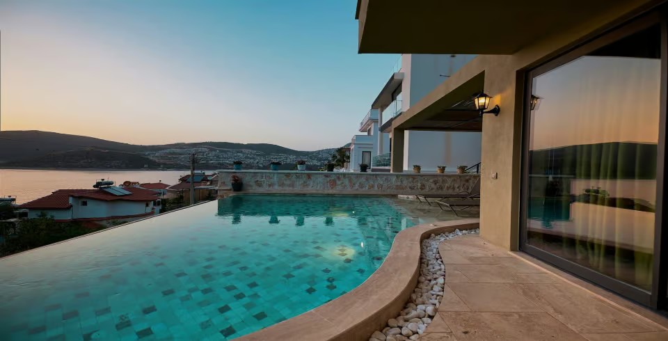 Antalya-Kalkan Kışla mevkiinde yer alan şık ve modern VillaCalypso, üç katlı yapısı, üç yatak odası ve her biri ebeveyn banyolu olanaklarıyla konfor ve lüksü bir arada sunar. Tam donanımlı mutfağı ve geniş yaşam alanları ile misafirlerine benzersiz bir tatil deneyimi vaat eden bu villa, deniz manzaralı sonsuzluk havuzuyla da ayrıcalıklı bir konaklama imkanı sağlar.