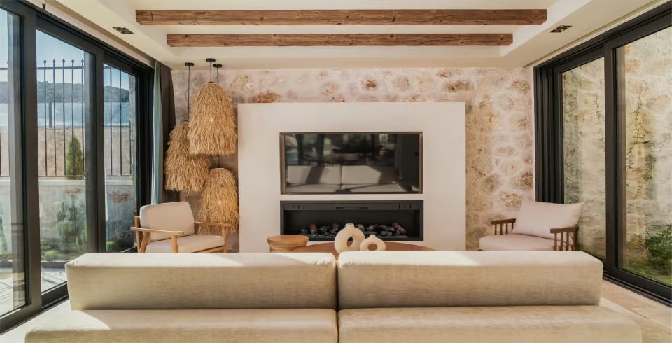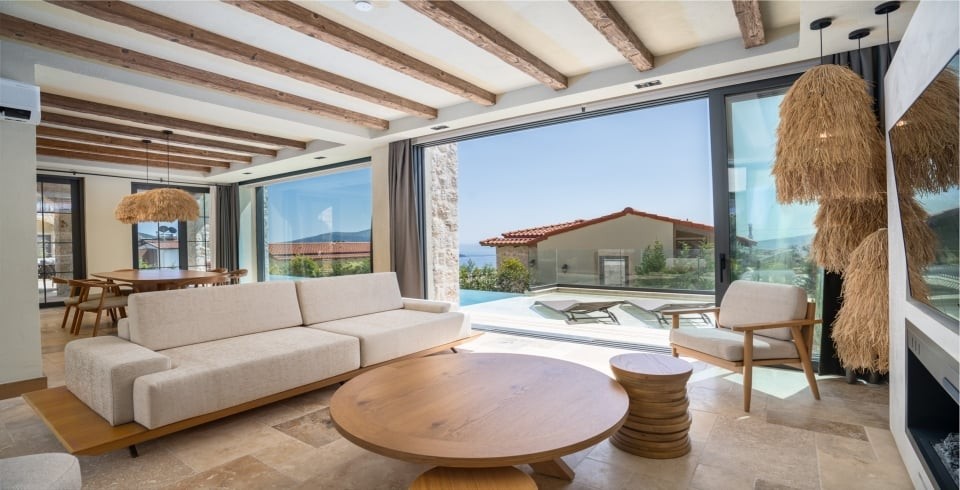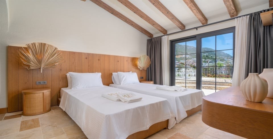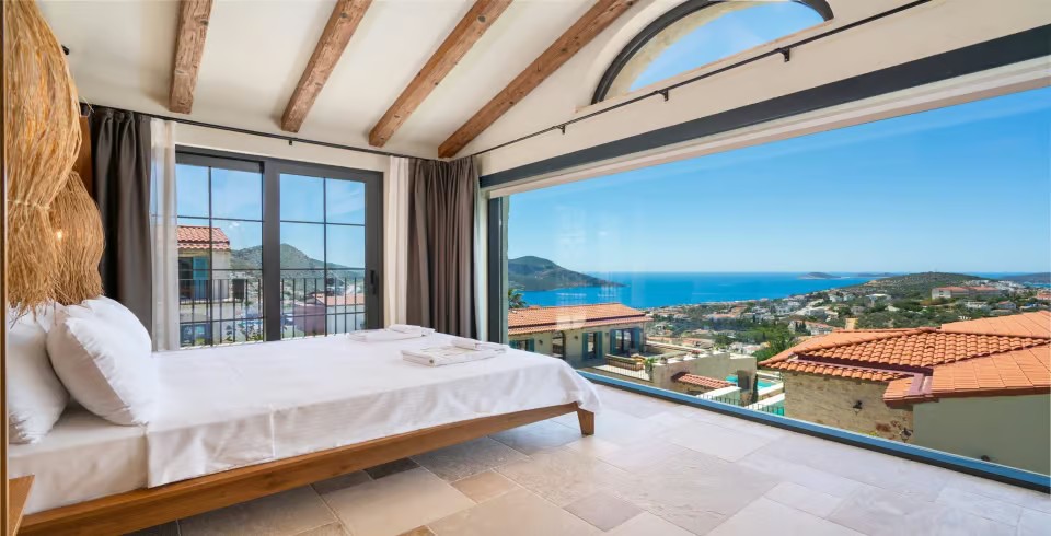 Villa Calliope, Kalkan’ın Kızıltaş bölgesinde deniz manzaralı konumuyla dikkat çeken zarif bir villadır. Üç yatak odası ve üç banyosu ile altı kişiye kadar konaklama kapasitesi sunar. İç mekânında açık plan salon, ferah oturma alanı ve tam donanımlı mutfak yer alırken, geniş cam cepheler sayesinde iç ve dış alan arasında doğal bir bağlantı kurulur.