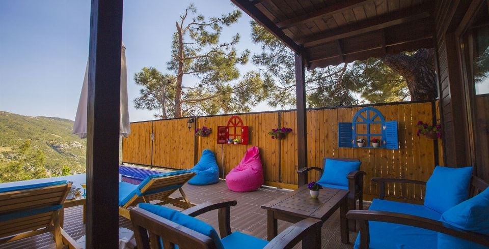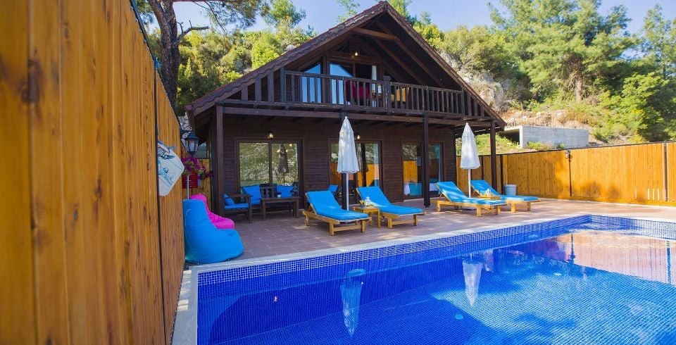 Villamız Kalkan İslamlar bölgesinde bulunan villamız, harika kahverengi ahşap tasarımıyla tamamen size başka bir hava vermektedir. Bu harika tasarım villamızın kapasitesi 4 kişilik olup 2 yatak odası içerir. Özel korunaklı villamız dışarıya karşı kendini gizleyebilir havuzu ile beraber jakuzisi de bulunuyor. Jakuzili muhafazakâr balayı villamız doğa içerisinde harika bir konumdadır. Huzuru size getirerek tüm yorgunluğunuzu alan bu villamızda tatil fırsatınız kesinlikle kaçırmayın. Havuz ölçüleri: 4 metre, 4 metre, 1,60 cm’dir Sizde sevdiklerinizle unutulmaz anılar biriktirmek ve keyifli zamanlar geçirmek için Villa Çam’a bekleriz.