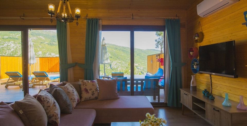 Bütün villa çeşitlerimiz için villalara ilk gün giriş saati öğleden sonra 16.00, tatilinizin sonunda ise villadan ayrılma saatiniz ise sabah 10.00’dur. Aradaki zaman diliminde hijyen için gerekli temizlik yapıldığından dolayı villaya giriş saatinizden erken gelme durumlarında sizlere yardımcı olamayacağımızı belirtmek durumundayız. Bu yüzden sizden ricamız villaya giriş ve çıkış saatlerinize dikkat etmeniz. Kalkanda bulunan bu villamız coğrafi yapısı bakımından, yamaç üzerine kurulmuş bu harika tasarım villamız bu yüzden size harika bir manzara sunmaktadır. Kalkan ve çevresindeki bulunan tüm villalarımıza ulaşmak için, yokuş yukarı çıkılmaktadır ama bunun sonucunda mükemmel bir tatil yerine ulaşmış olacaksınız.