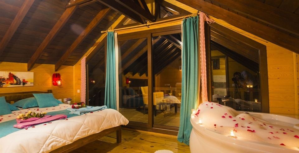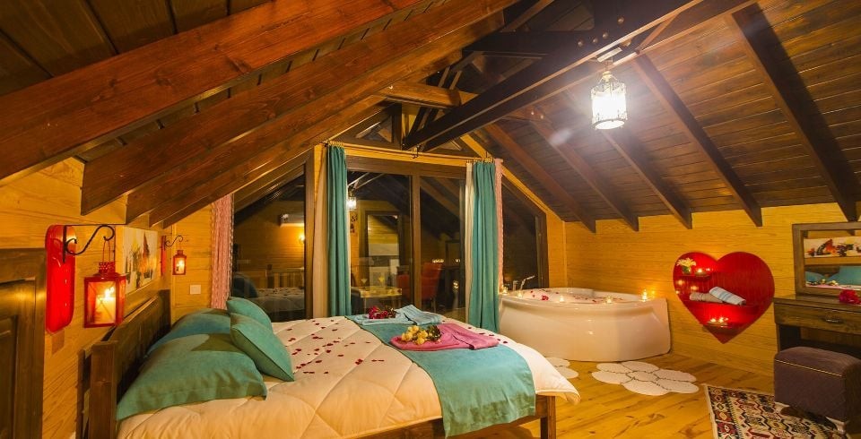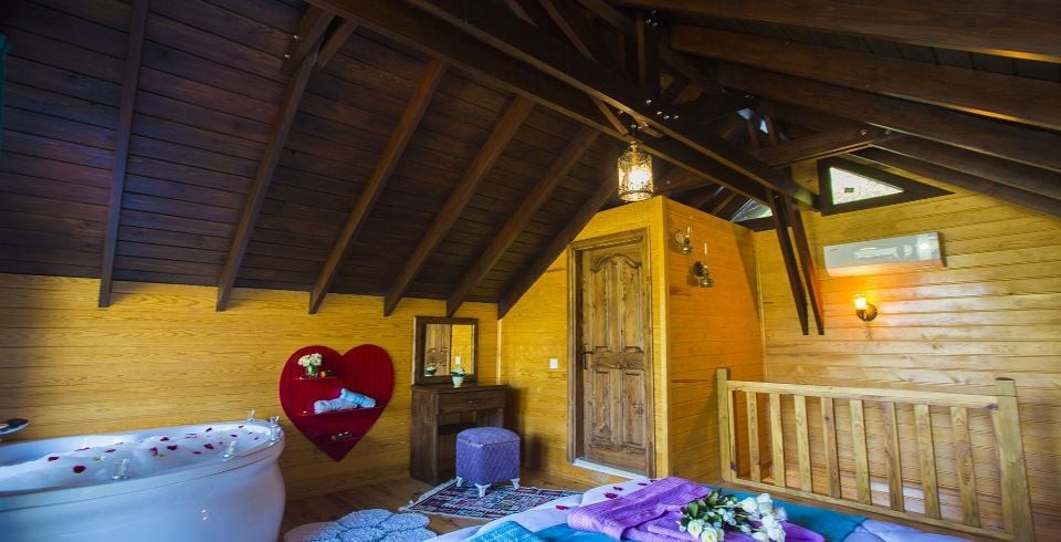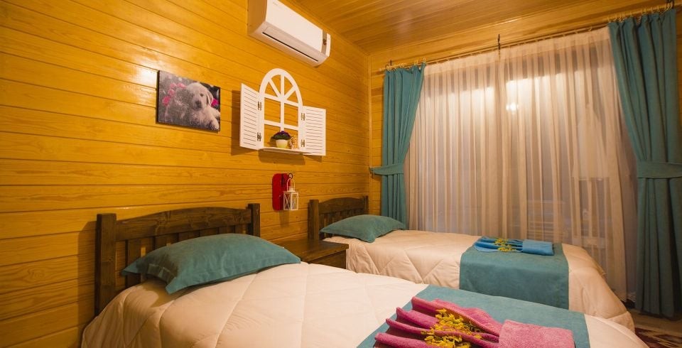 1. Yatak Odası : Çift kişilik yatak odamızın içerisinde lüks bir jakuzi ile beraber, bakımları yapılmış klima bulunmakta. Oda içerisinde diğer bulunan eşyalar, komodin, makyaj masası, elbise dolabı ve temiz banyo, lavabo bulunuyor. Aynı zamanda odada bulunan balkon ve masalar ile balkon keyfi yapabilirsiniz.
