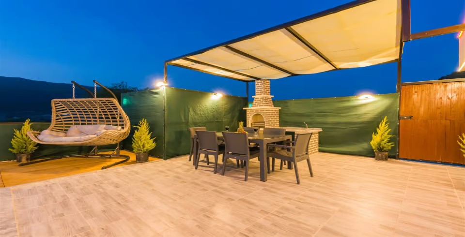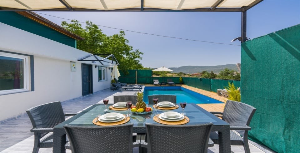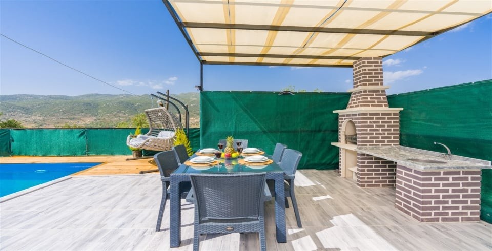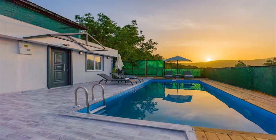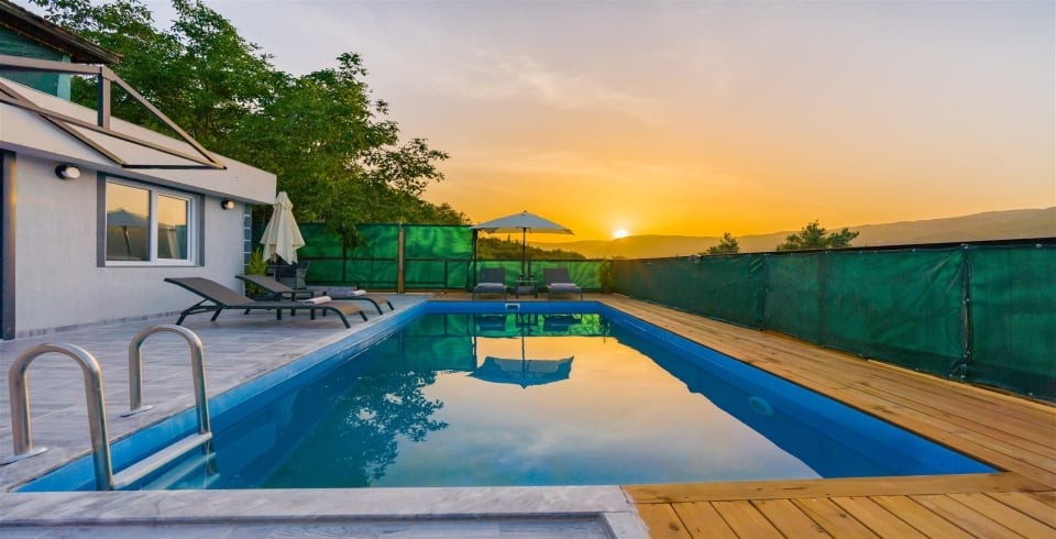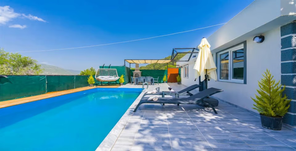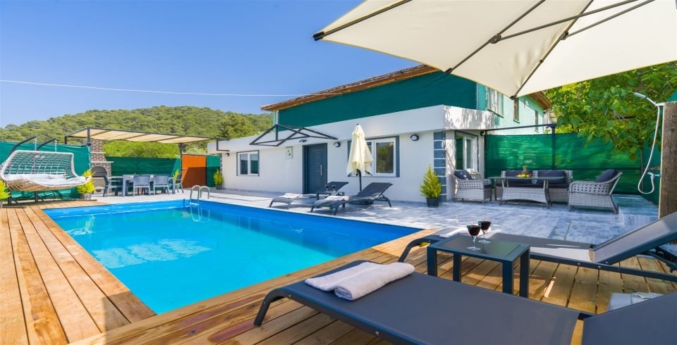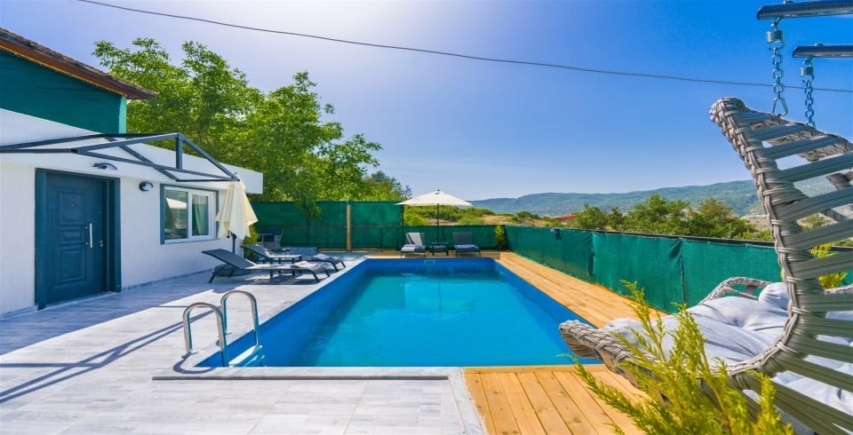 Havuz ve Bahçe: Villamızın havuzu ise etrafı dışarıdan görülmeyecek şekilde korunaklı olup sizlere huzurlu ve keyifli havuz deneyimi sunmaktadır. Bahçe mobilyası, salıncak, yemek masası, barbekü, şezlong ve güneş şemsiyesi bulunmaktadır.