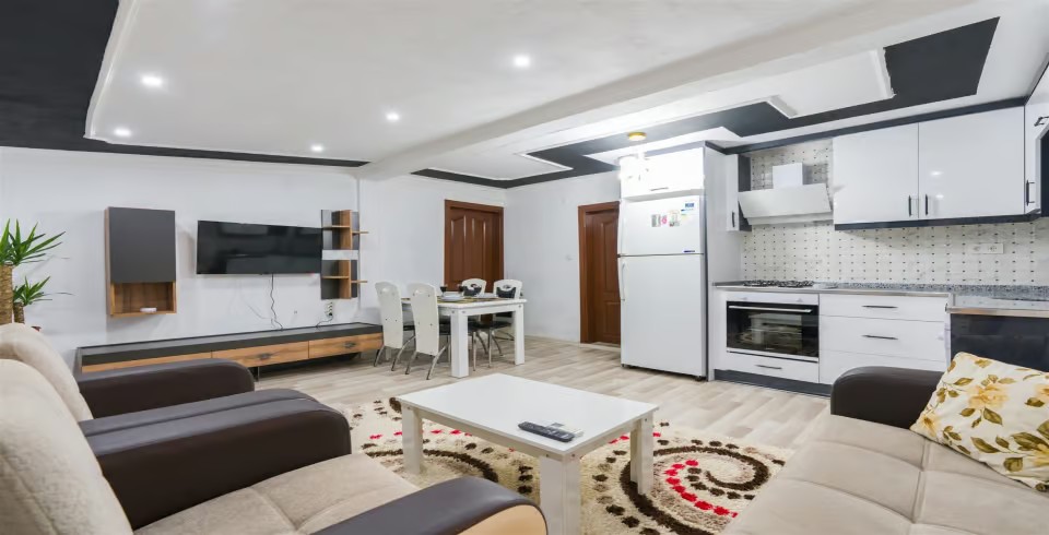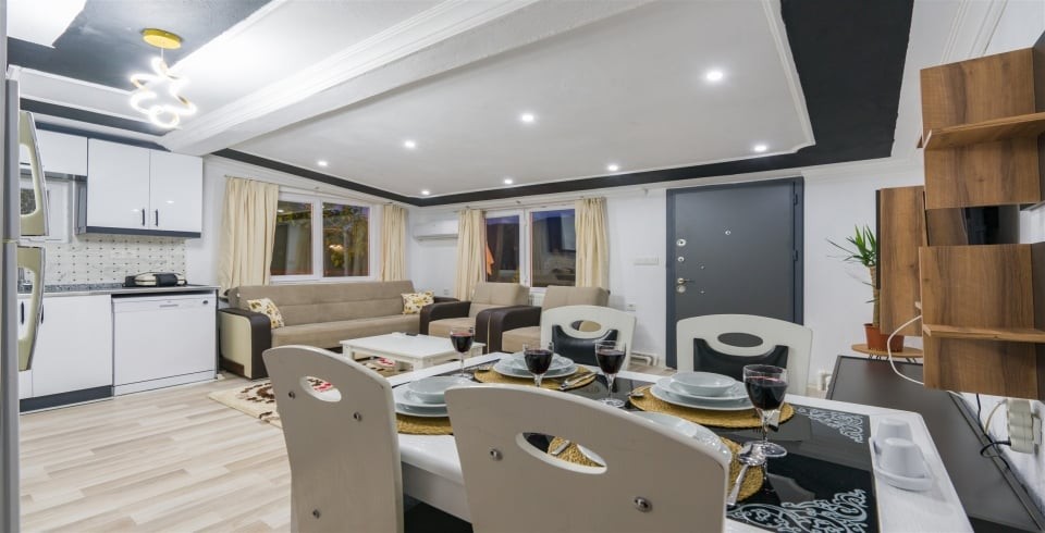 Mutfak : Mutfak bölümümüzde, buzdolabı, bulaşık makinesi, çamaşır makinesi, fırın, çatal & bıçak takımı, yemek takımı, kettle vb. mutfak ekipmanları bulunmaktadır.