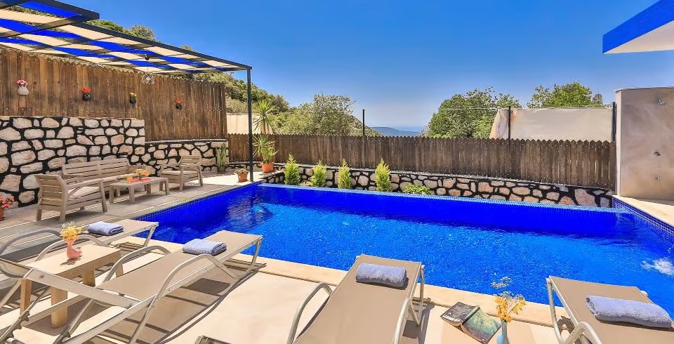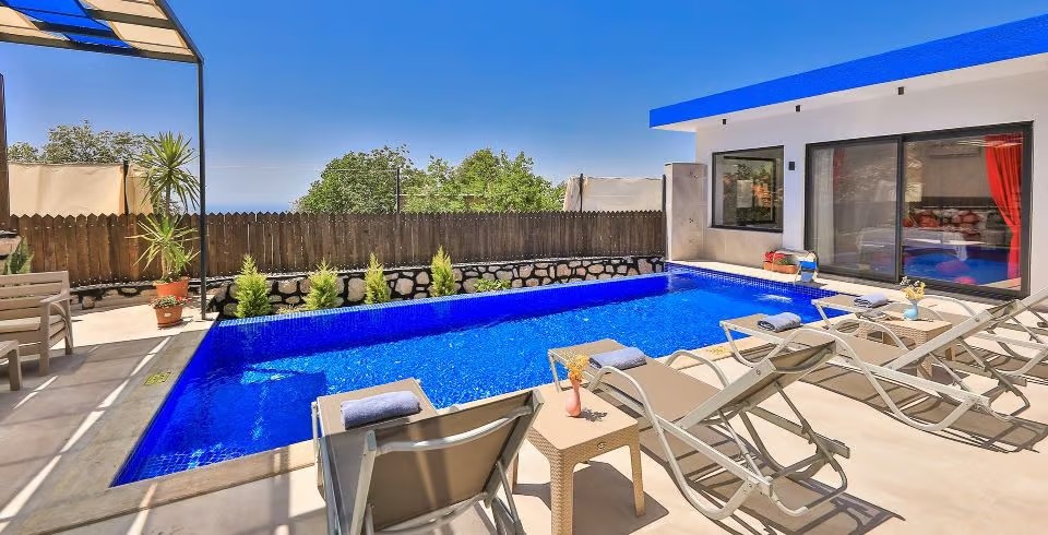 Havuz ve Bahçe: Villamızın havuzu ise etrafı dışarıdan görülmeyecek şekilde korunaklı olup sizlere huzurlu ve keyifli havuz deneyimi sunmaktadır. Bahçe mobilyası, barbekü, şezlong ve güneş şemsiyesi bulunmaktadır.