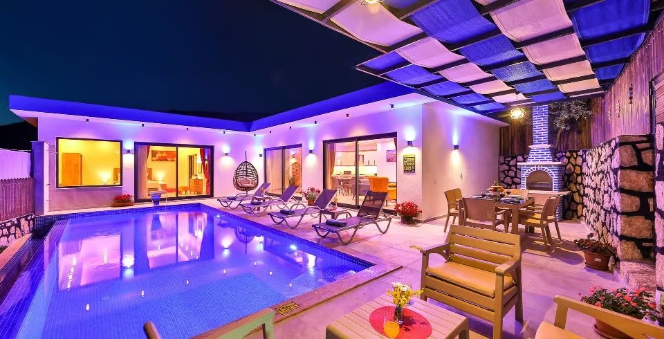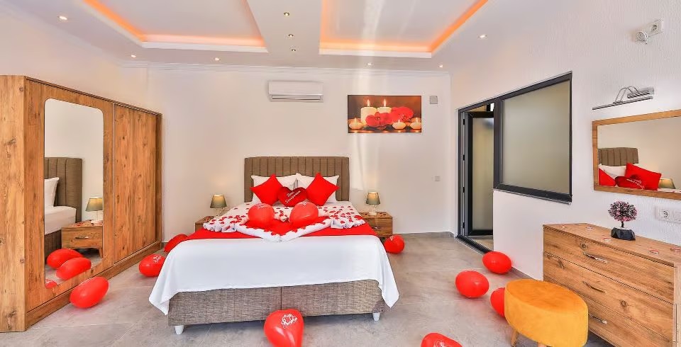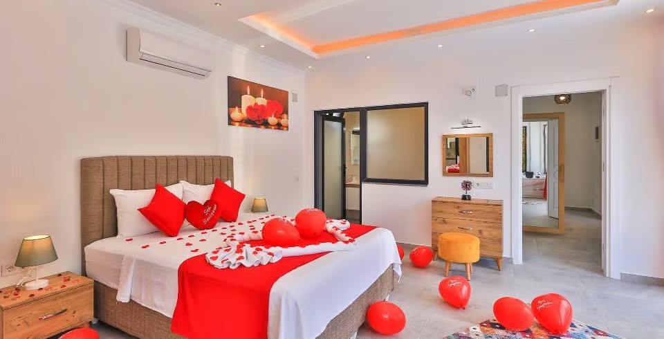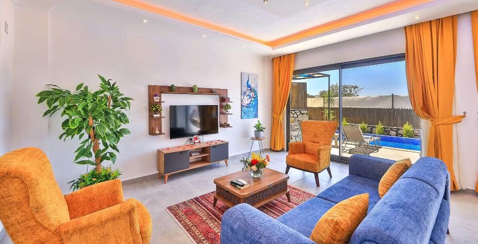 Villa Can can, 2022 yılının Haziran ayında yapımı tamamlanan, Kalkan İslamlar Mevkiin de konumlanmakta olan şehrin kalabalığından uzak, yeşilliklerle kaplı doğa manzarasına hakim kiralık villalarımız arasında yer almaktadır. Konforlu ve modern bir şekilde dekore edilen yazlık villamızda 2 adet yatak odası ve 2 banyo bulunmakta olup, 4 kişiye konaklama imkanı sağlamaktadır. Yatak odalarının bir tanesinin içerisinde tüm yılın vermiş olduğu yorgunluğu giderebileceğiniz iki kişilik jakuzi yer almaktadır. Diğer yatak odasında iki adet tek kişilik yatak bulunmaktadır. Ayrıca her şeyin en ince ayrıntısına kadar düşünülerek dizayn edilmiş mutfağımızda, çamaşır makinesi , fırın ,ocak , mikrodalga fırın , bulaşık makinesi, tost makinası ve mutfak araç-gereçleri ve yemek masası bulunmaktadır. Rengarenk şık görünümlü ve modern oturma grupları ile dizayn edilen ferah ve geniş salonumuzda TV izleyerek ve WİFİ bağlanarak tatilin keyfini çıkarabilirsiniz. Bebek yatağı ve mama sandalyesi bulunan villamız bebekli misafirlerimiz içinde idealdir