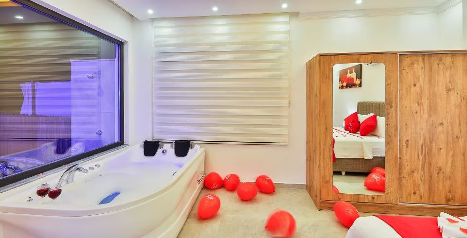 1. Yatak Odası : 1 Adet çift kişilik yatak, komodin, gardırop ebeveyn banyosu, klima, balkon ve Jakuzi bulunmaktadır.