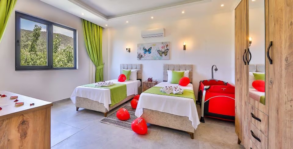 2. Yatak Odası : 2 Adet tek kişilik yatak, komodin, gardırop, ebeveyn banyosu, klima bulunmaktadır.