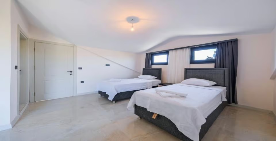 3. Yatak odası: 2 adet tek kişilik yatak, elbise dolabı, komodin, klima, banyo ve tuvalet bulunmakta