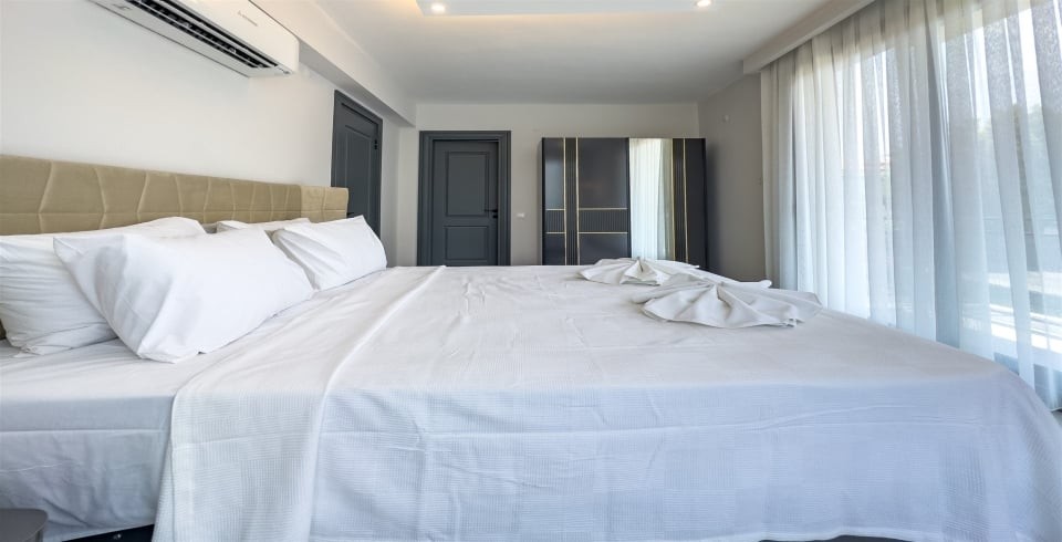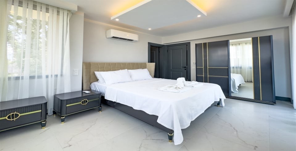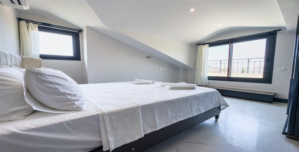 4.Yatak Odası: Çift kişilik yatak, Komodin, Klima, Elbise dolabı, Banyo ve Balkon bulunmaktadır. Teras Kat