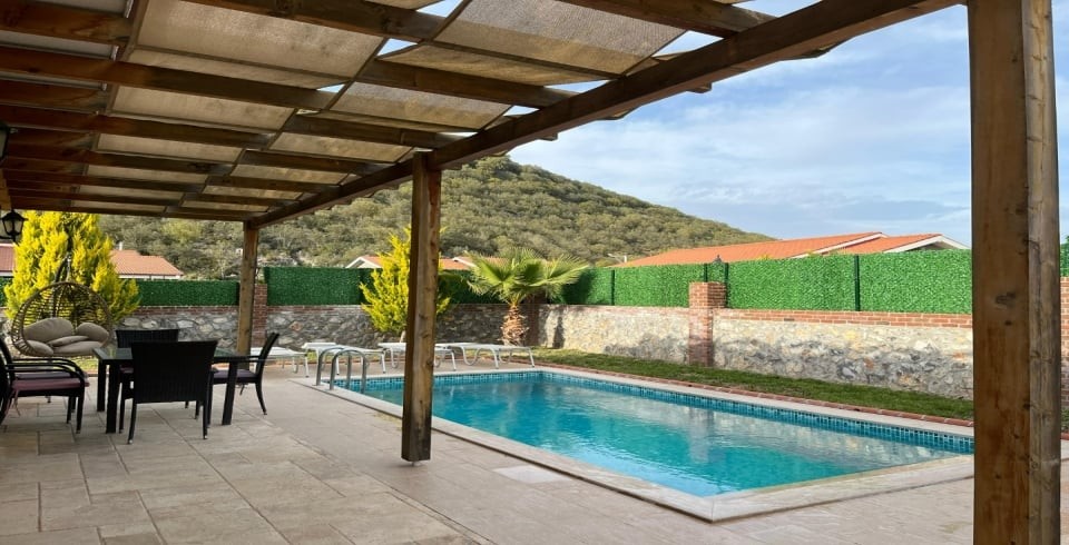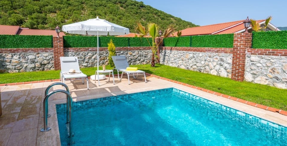 2 yatak odası ve 4 kişilik kapasitesiyle, özellikle çiftler ve küçük aileler için ideal bir konaklama sunan bu villa, mahremiyetine önem veren misafirler için de uygun bir seçenek. Sessiz ve sakin bir ortamda doğanın tadını çıkarabilir, havuzda serinleyerek ferahlayabilir, akşamları ise yıldızların altında keyifli anlar yaşayabilirsiniz.
