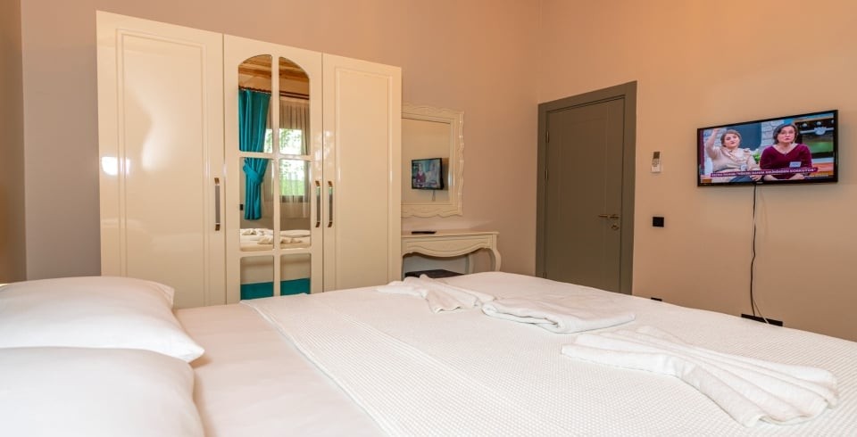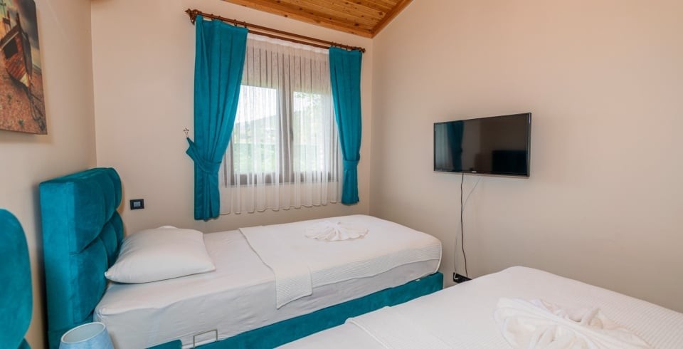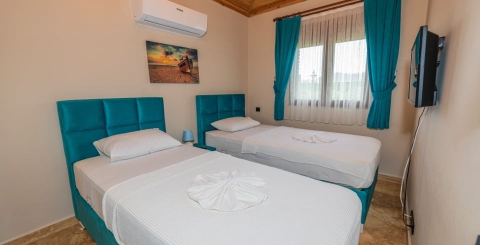 2. Yatak Odası : 2 adet tek kişilik yatak, elbise dolabı,TV, makyaj masası, komodin,banyo ve lavabo bulunmaktadır.